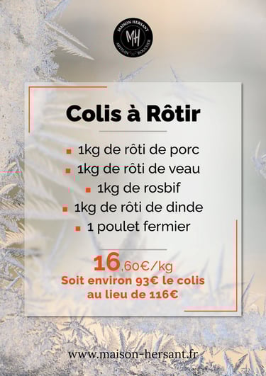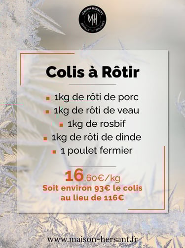 Maison Hersant vous propose une large gamme de produits pour faire plaisir à toute la famille ou à tous vos amis. Bon appétit ! Étant artisan boucher, nous vous proposons des colis d'exception pour faire plaisir à vos proches. Vous souhaitez de la charcuterie, une viande en particulier ? Vous trouverez votre bonheur dans notre boutique.